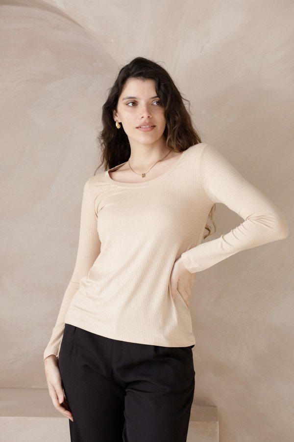 CAMISETA CUELLO U MORLEY VISCOSA BASTON ANCHO