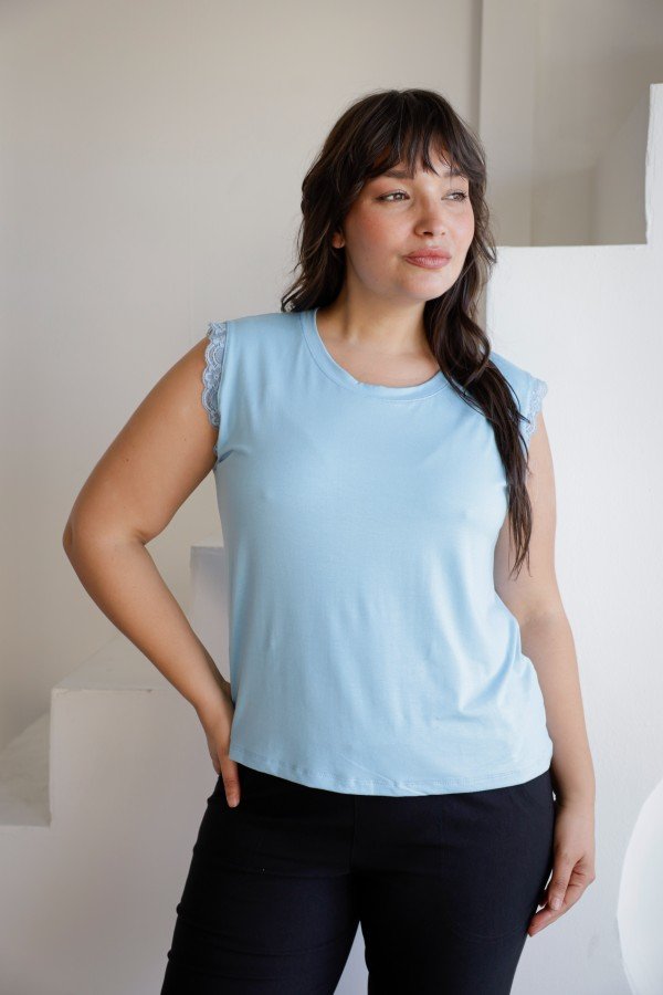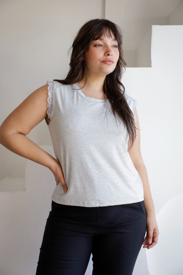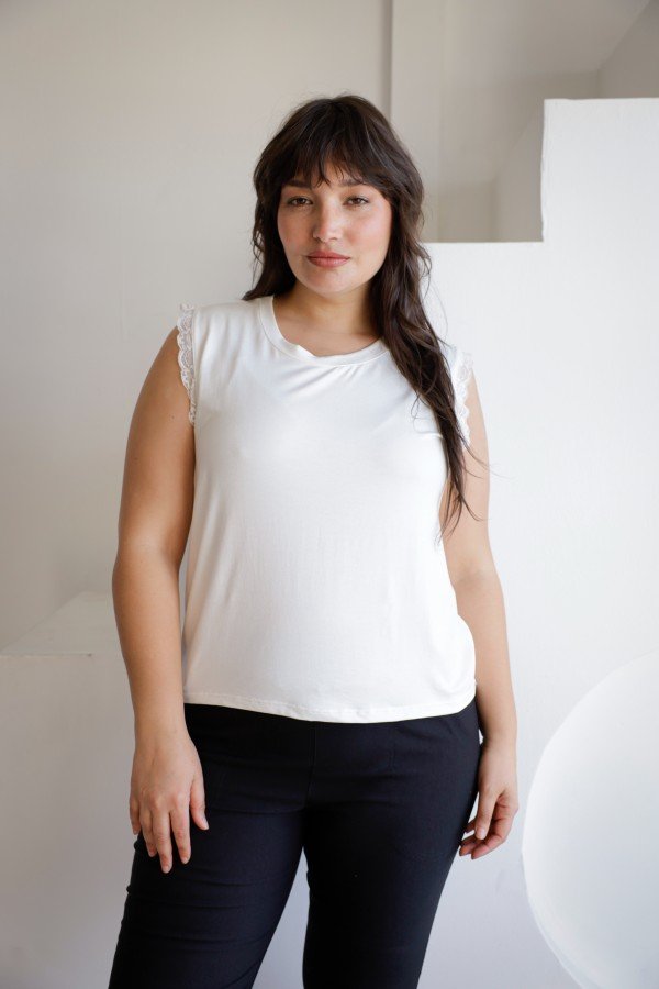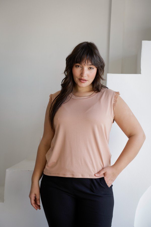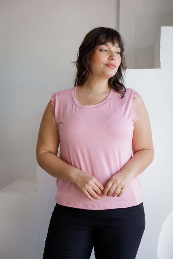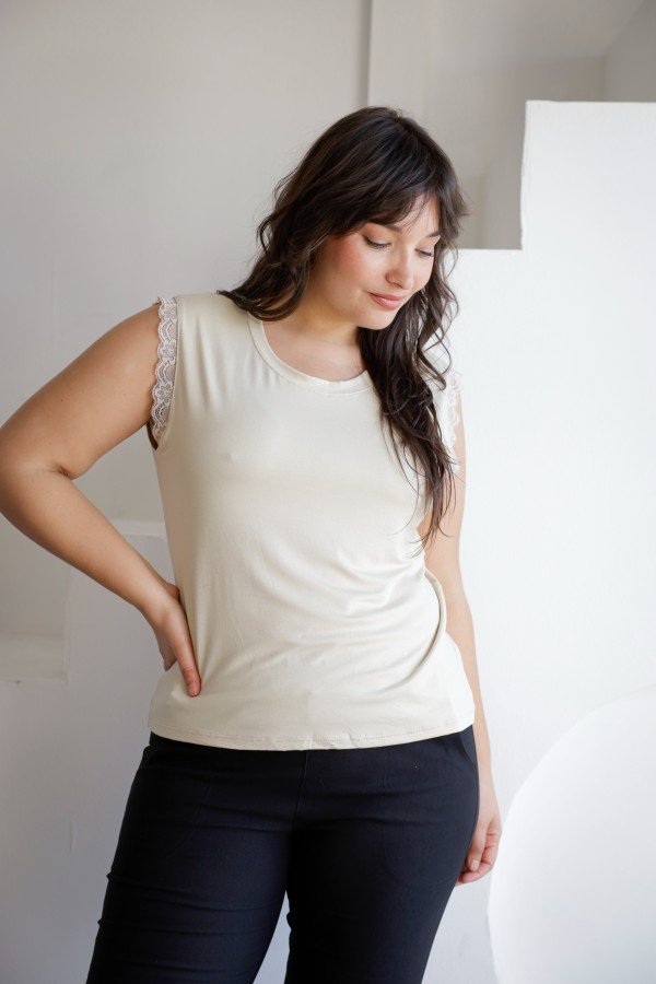 REMERA SIN MANGAS CON PUNTILLA AL TONO MODAL VISCOSA