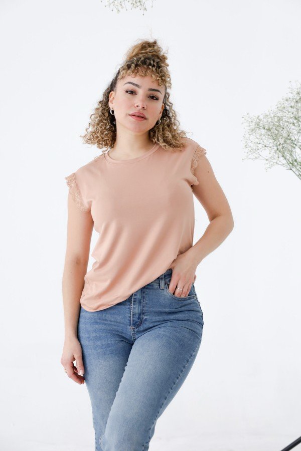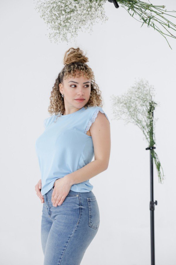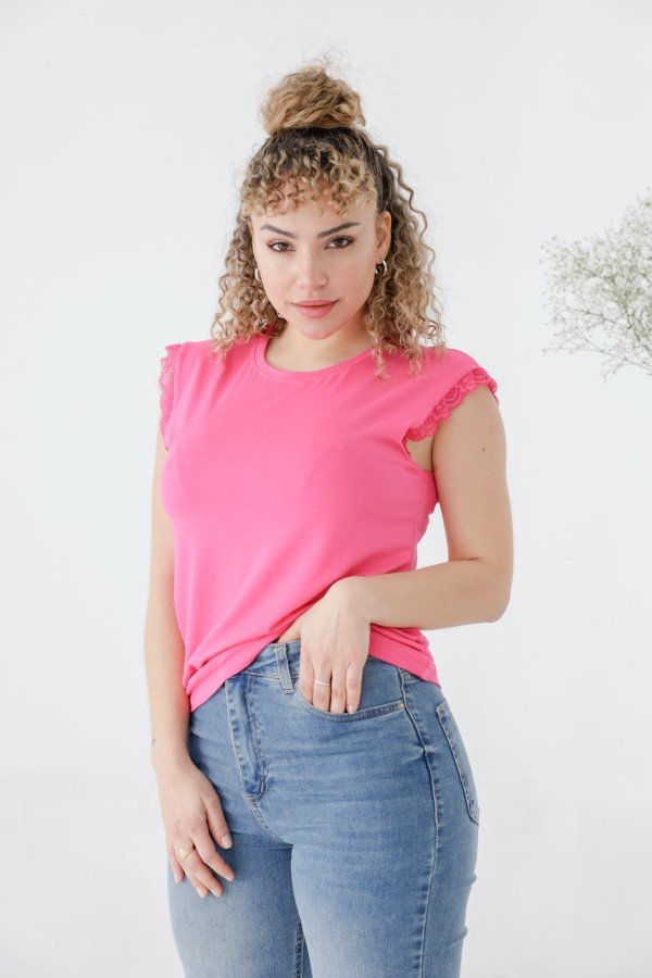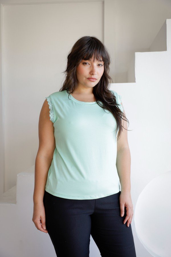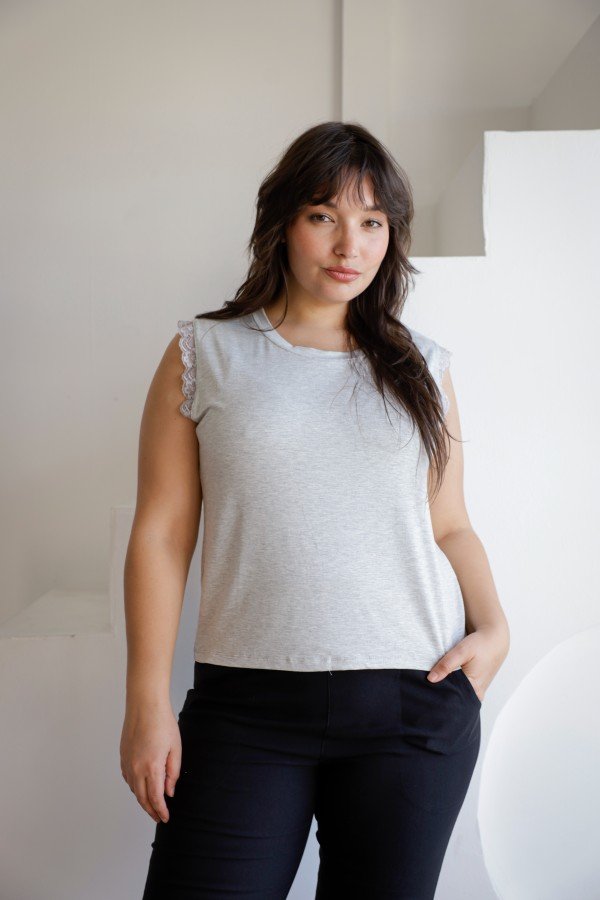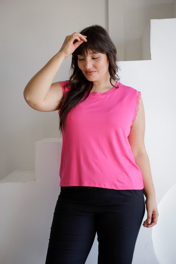 REMERA SIN MANGAS CON PUNTILLA AL TONO MODAL VISCOSA