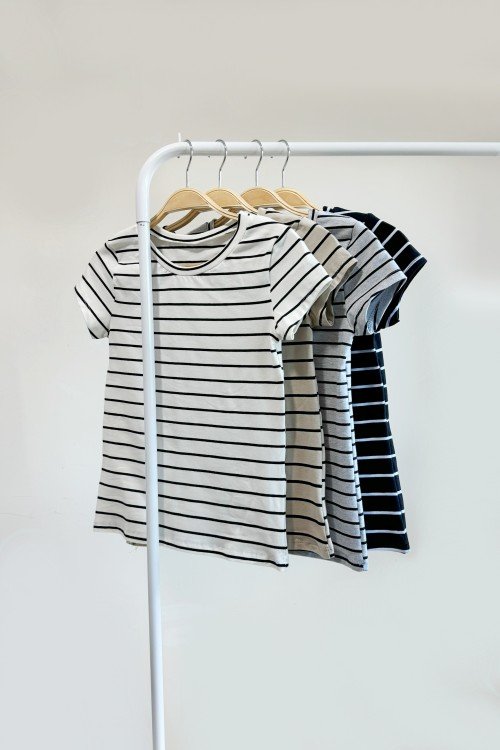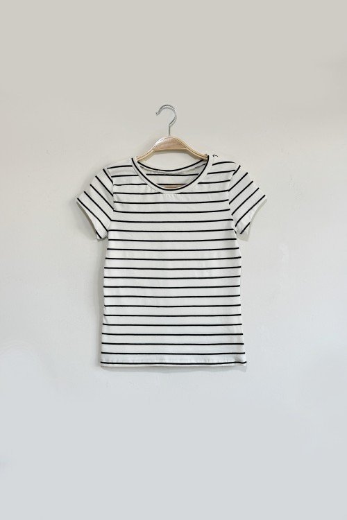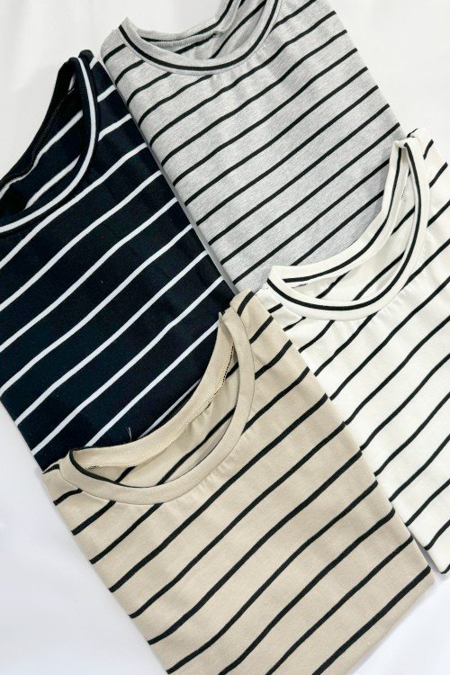 REMERA BASICA CUELLO REDONDO ALGODON RAYADO