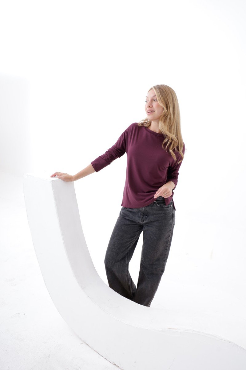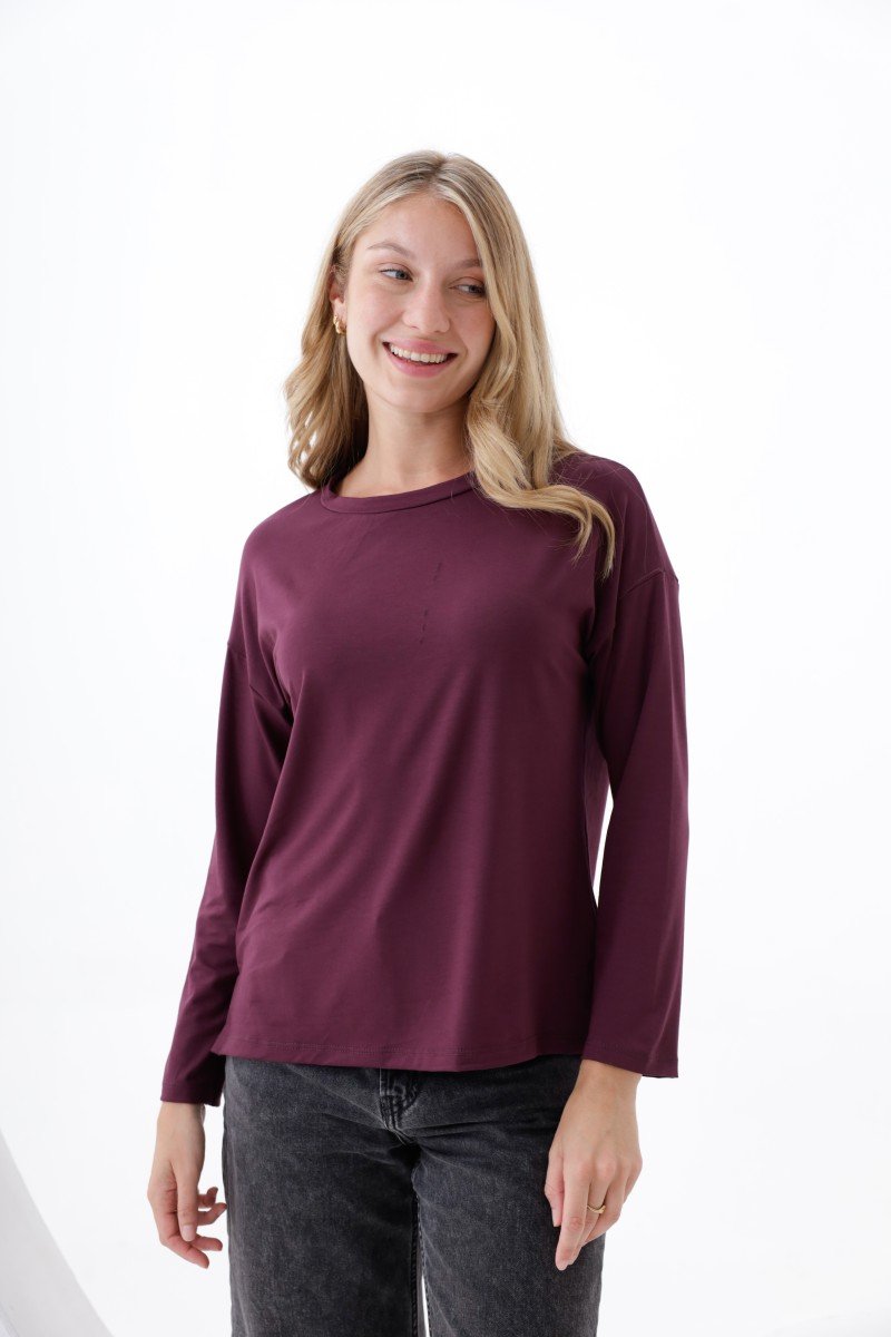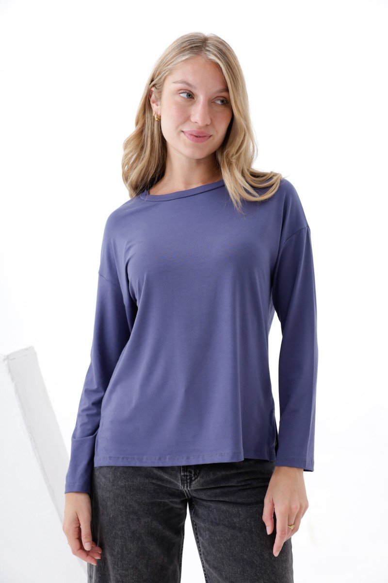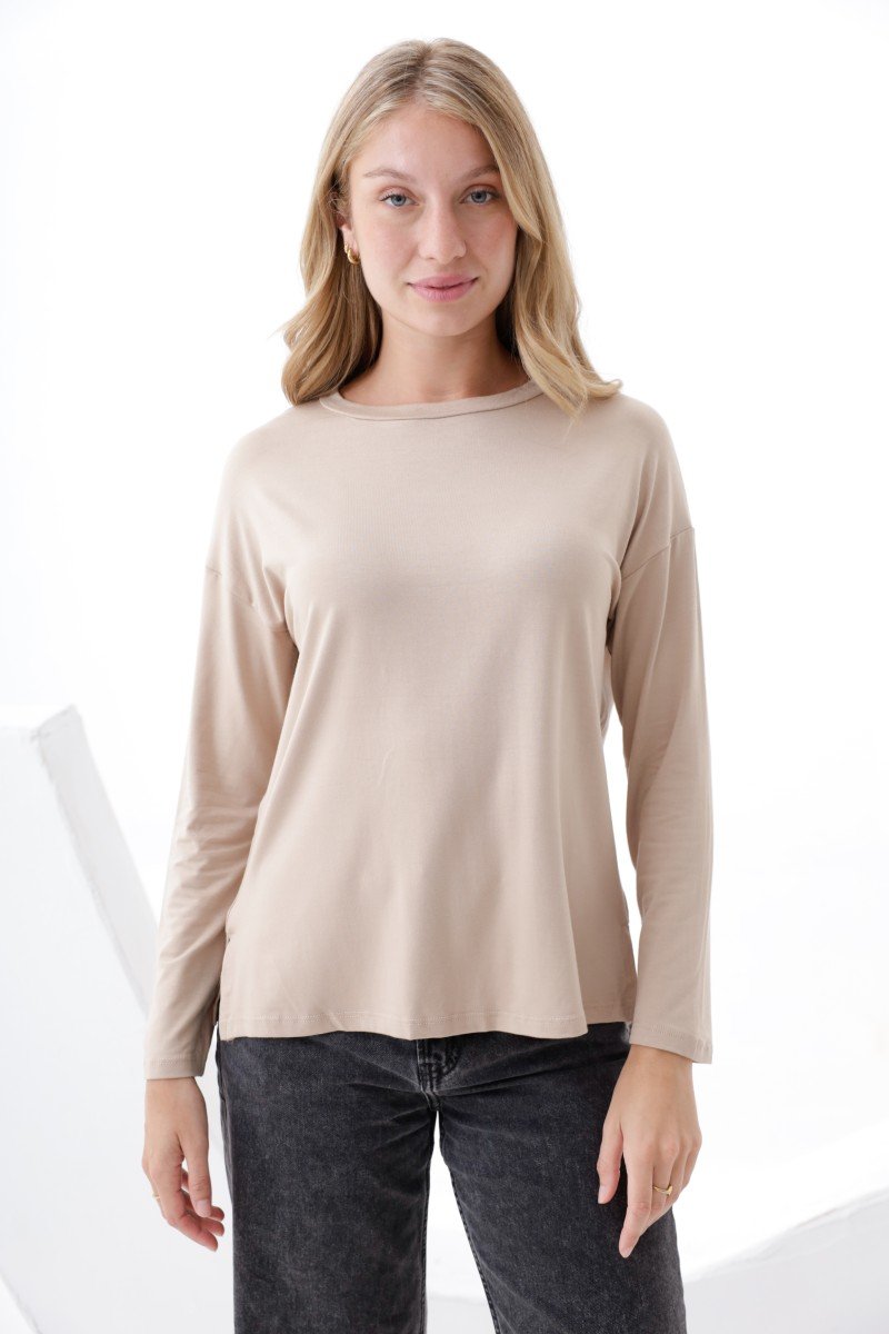 CAMISETA MANGA LARGA AMPLIA CON TAJOS LATERALES MODAL VISCOSA