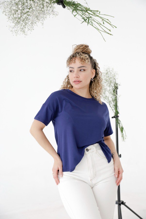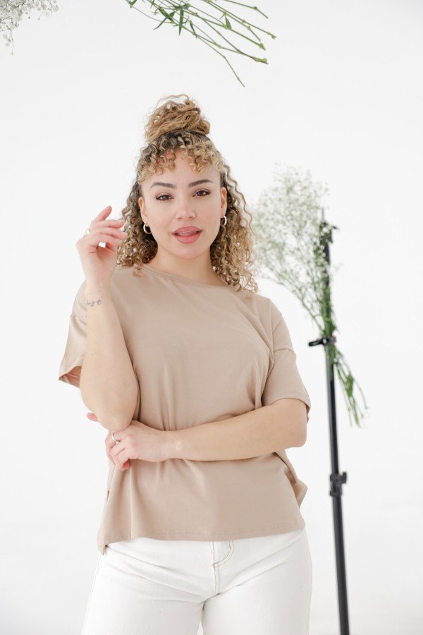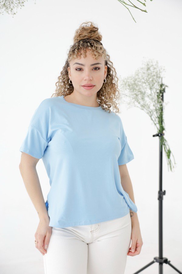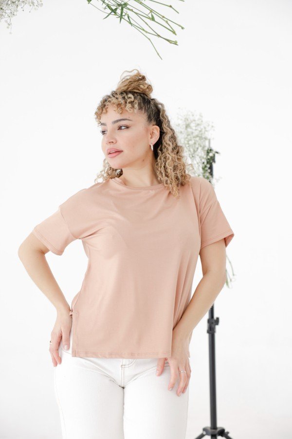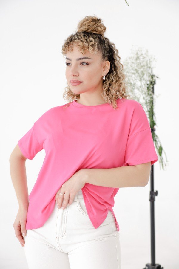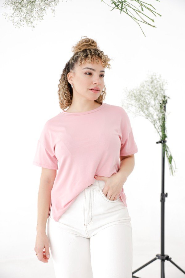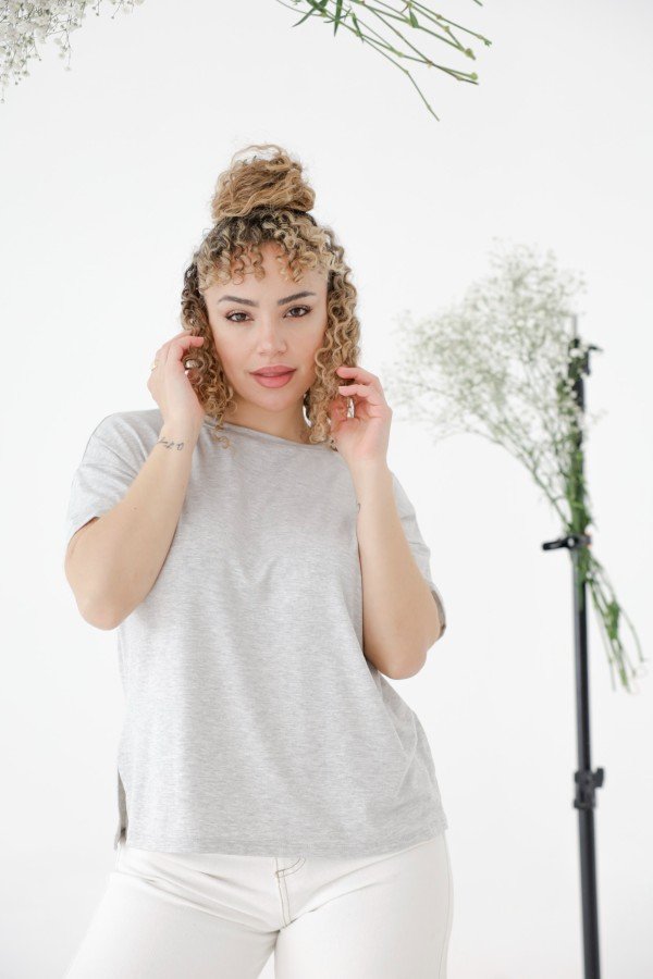 REMERA AMPLIA CON TAJOS LATERALES CUELLO REDONDO MODAL VISCOSA