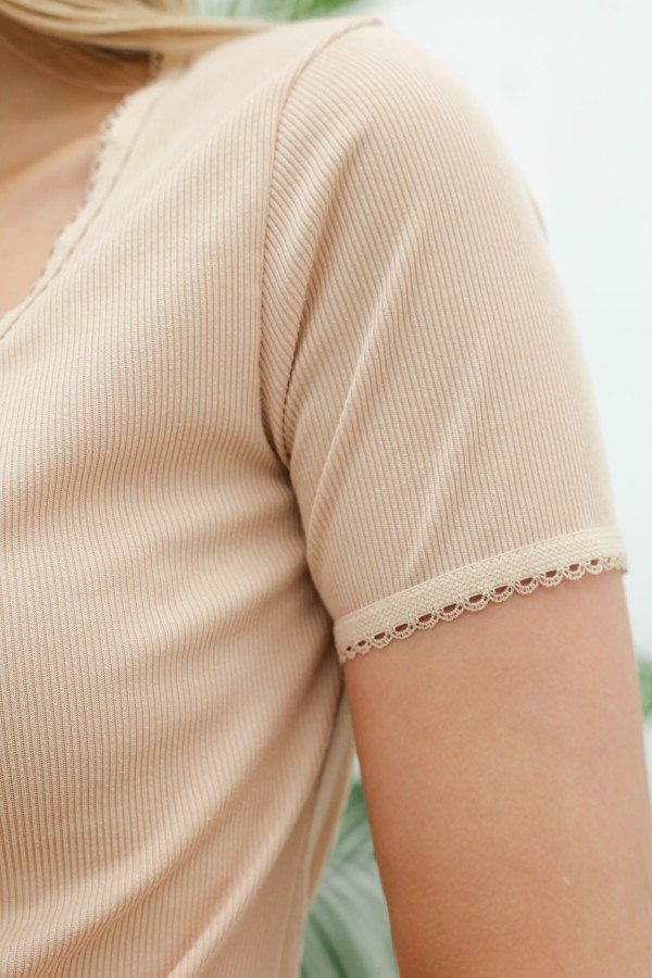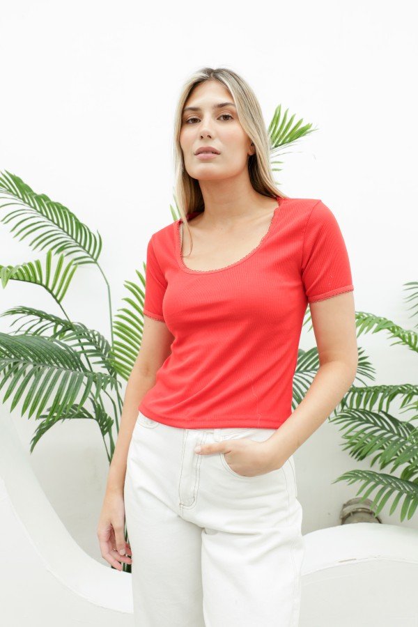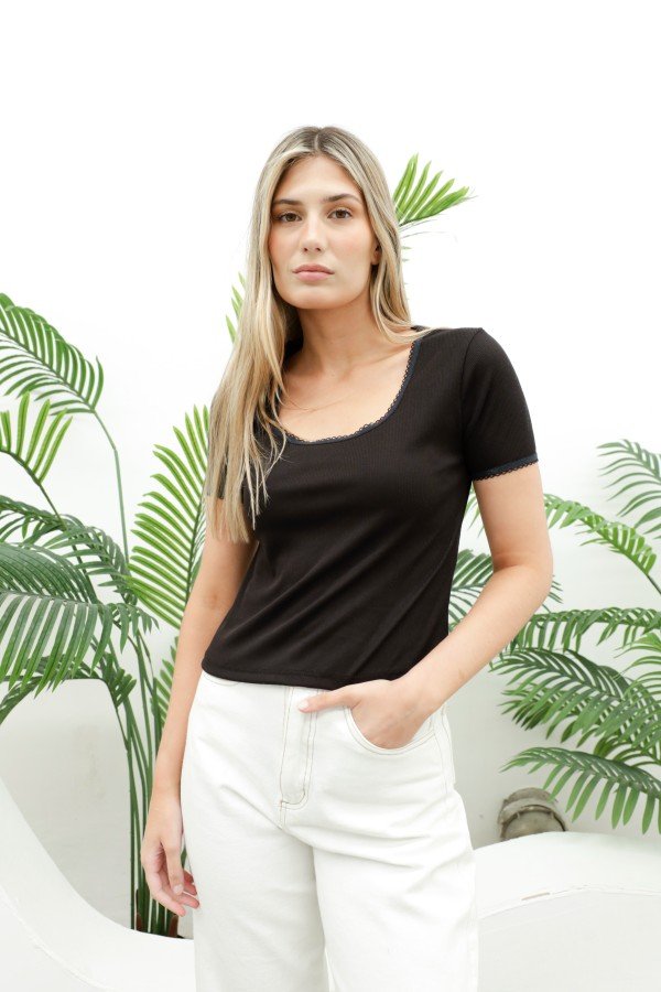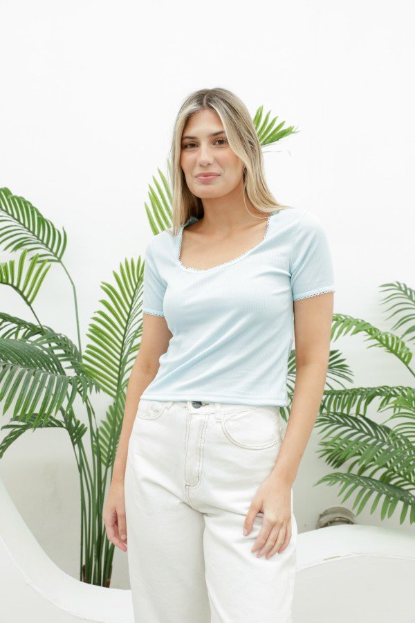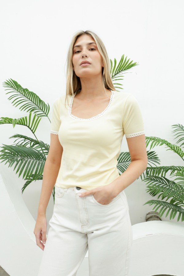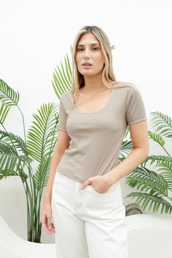 REMERA CON ELASTICO PICOT AL TONO EN CUELLO Y MANGA MORLEY SOFT