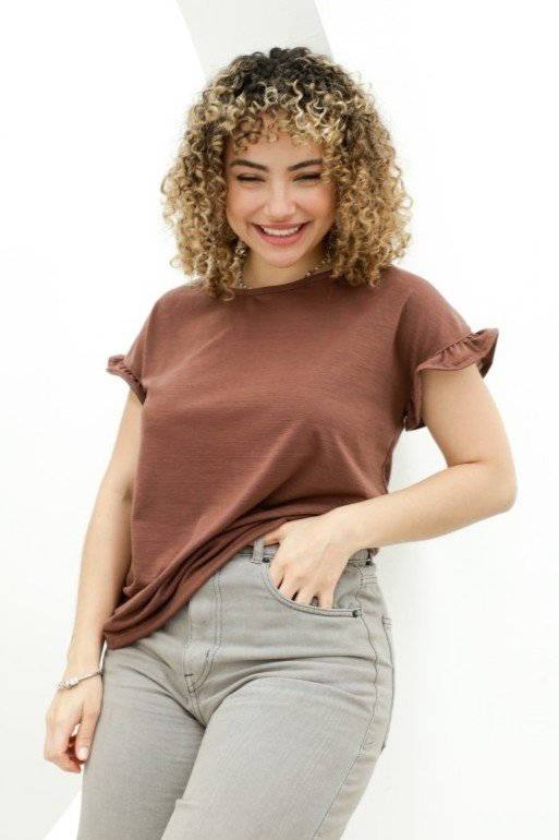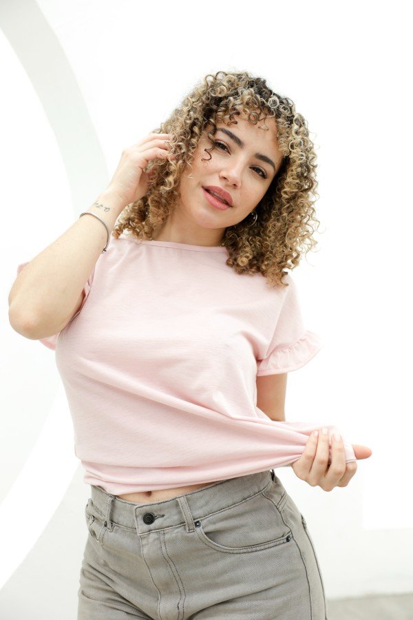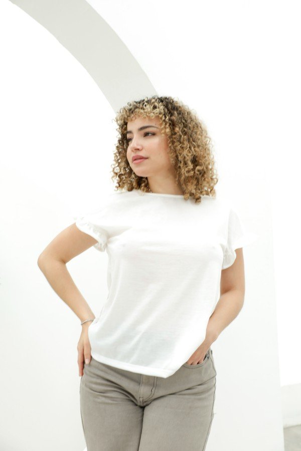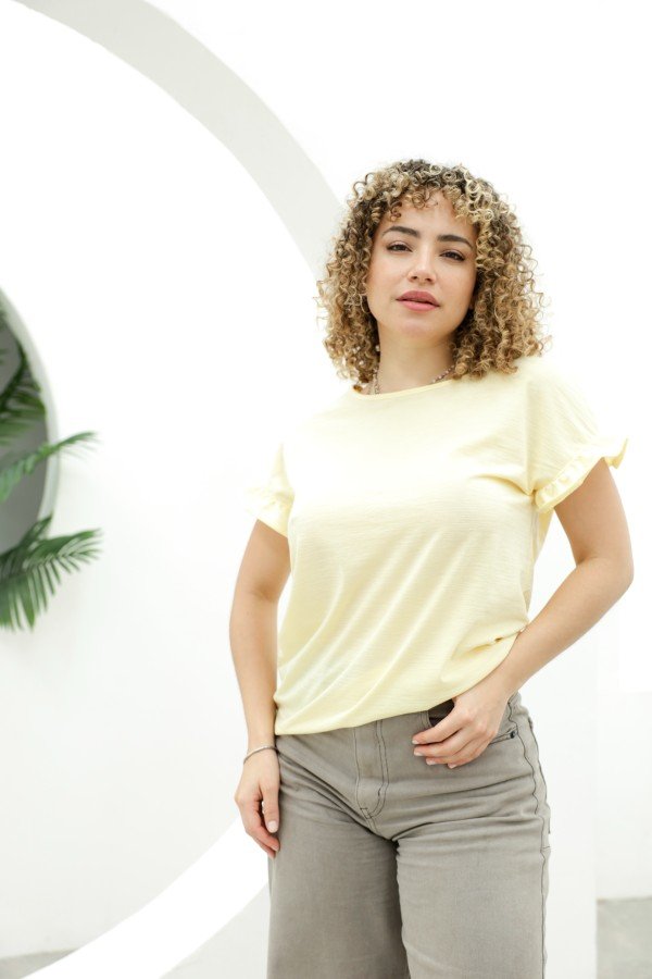 REMERA CUELLO REDONDO CON VOLADO SUAVE EN MANGA FLAME