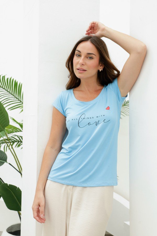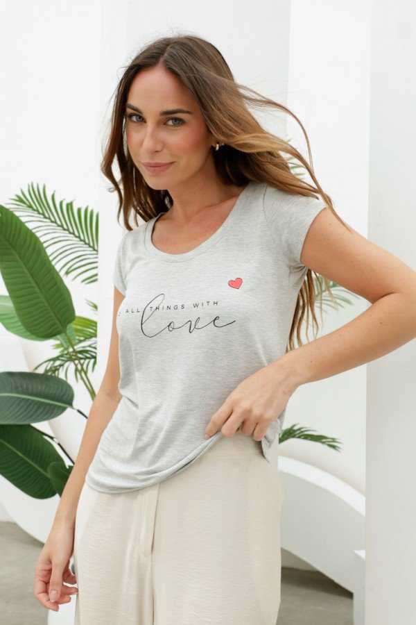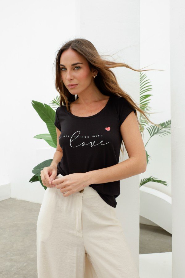 REMERA BASICA ESTAMPADA LOVE CORAZON ROJO MODAL VISCOSA