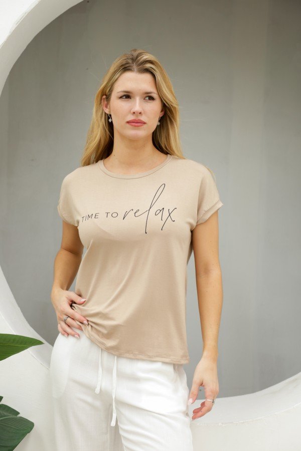 REMERA CON ESTAMPA «RELAX» MODAL VISCOSA