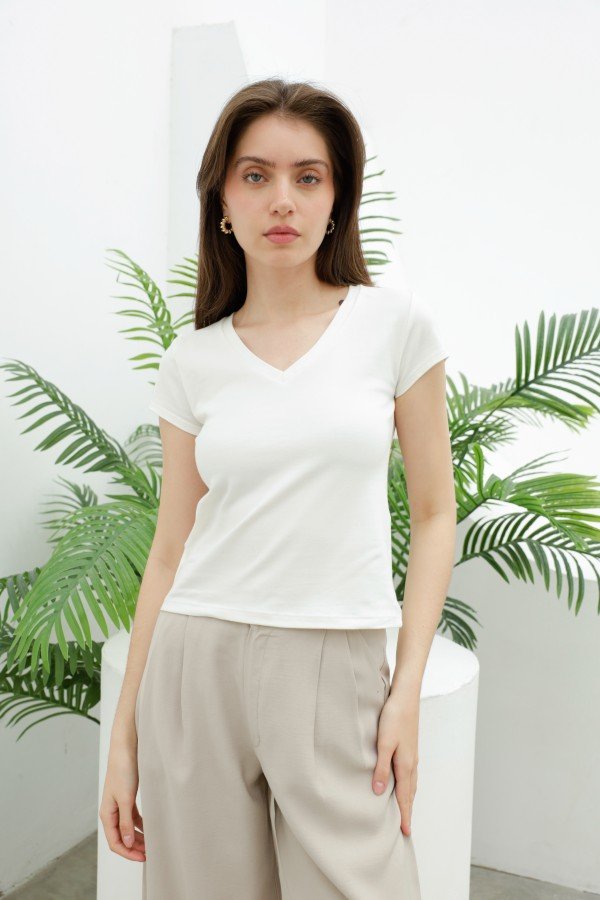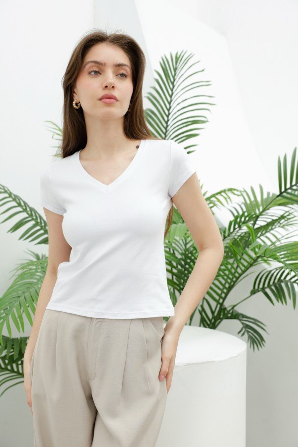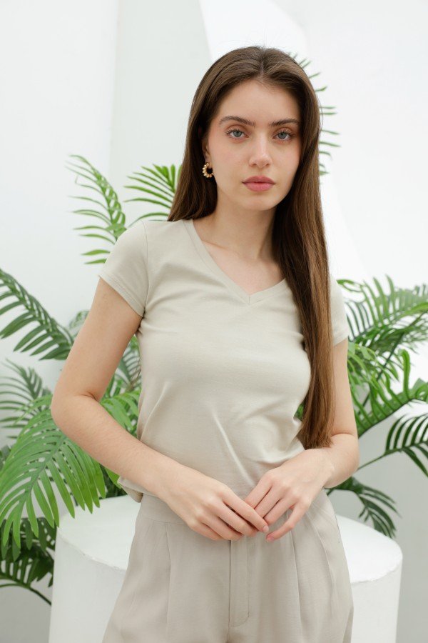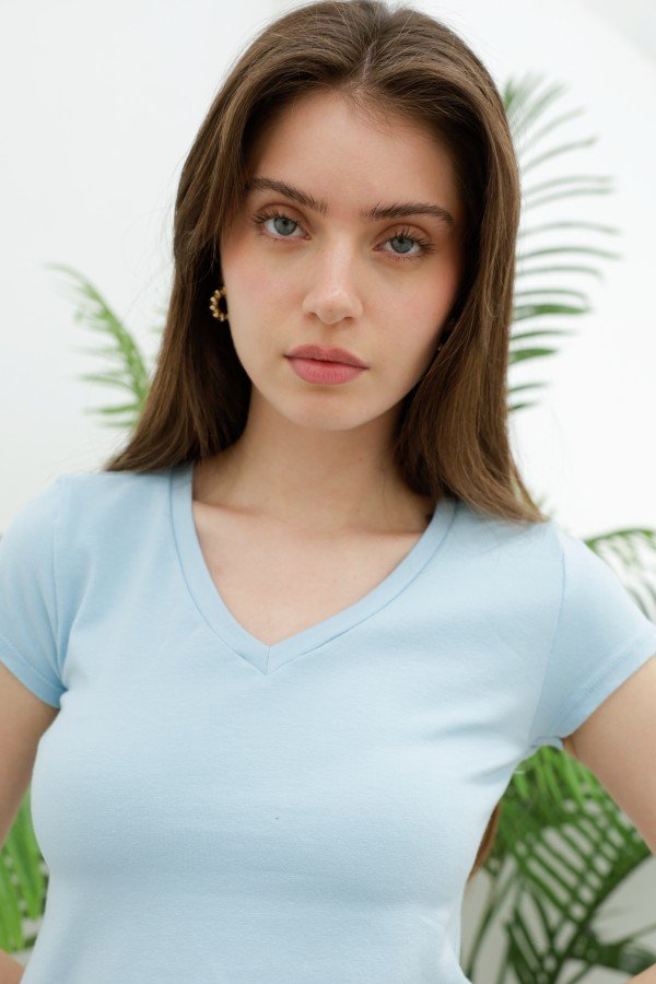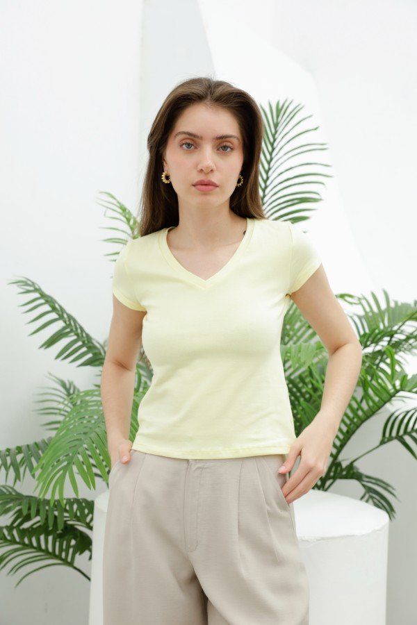 REMERA BASICA ESCOTE V ALGODON LYCRA