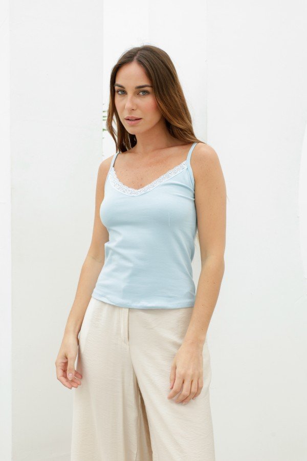 MUSCULOSA TIRITA CON PUNTILLA AL TONO ALGODON LYCRA