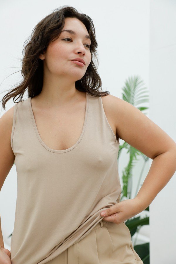MUSCULOSA BASICA AMPLIA CUELLO U MODAL VISCOSA