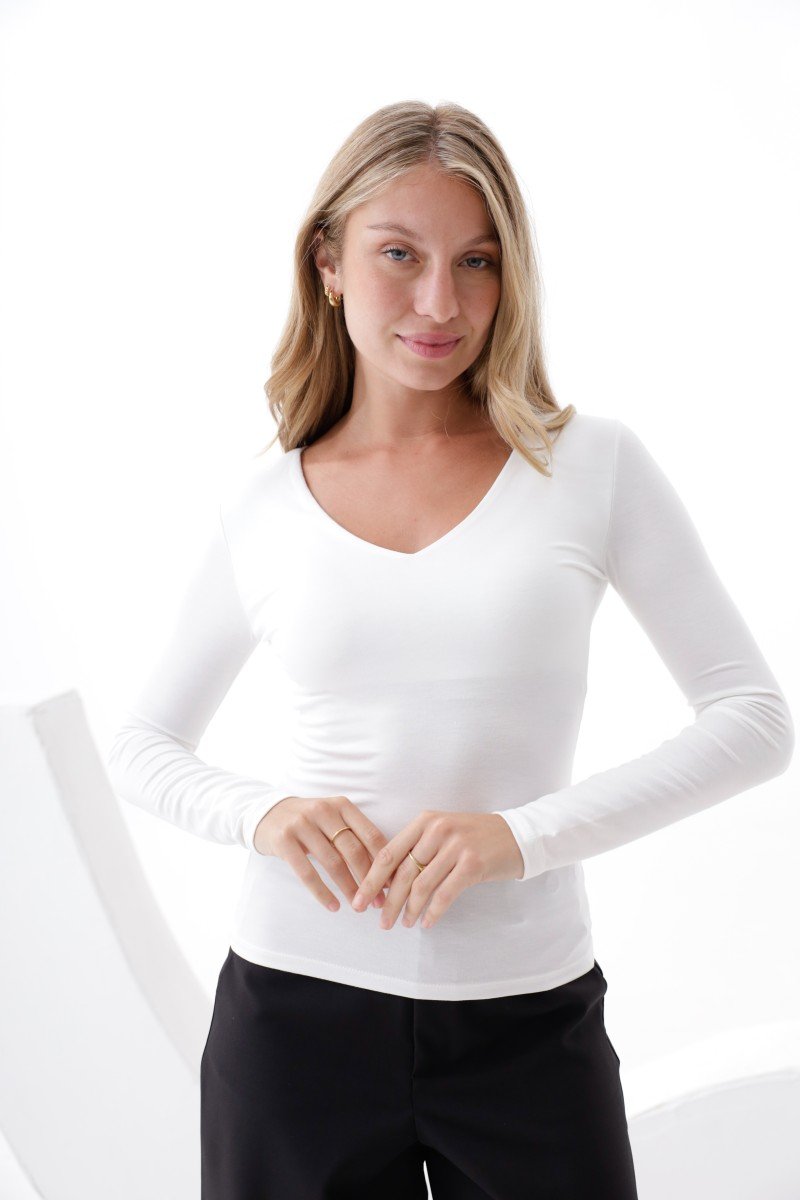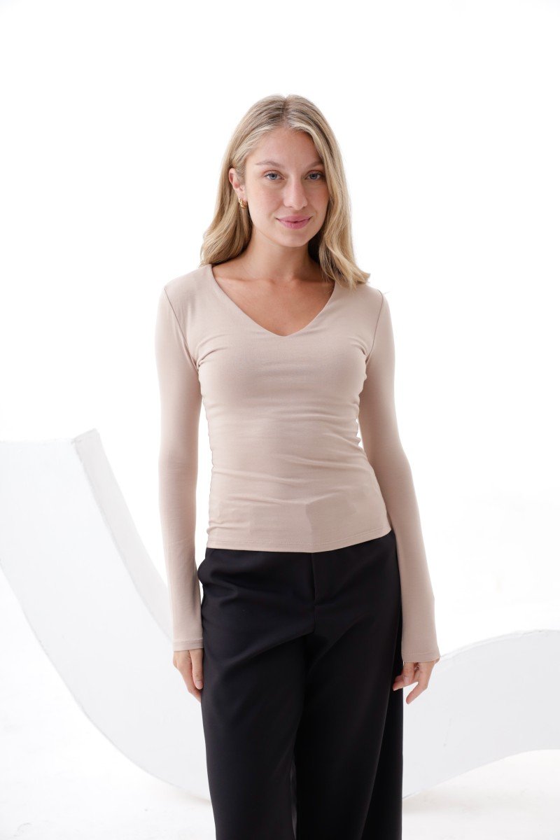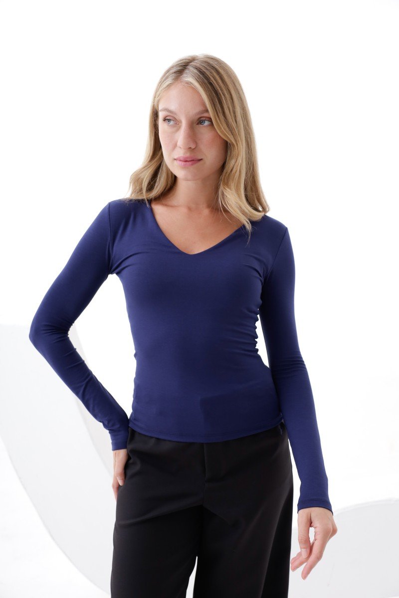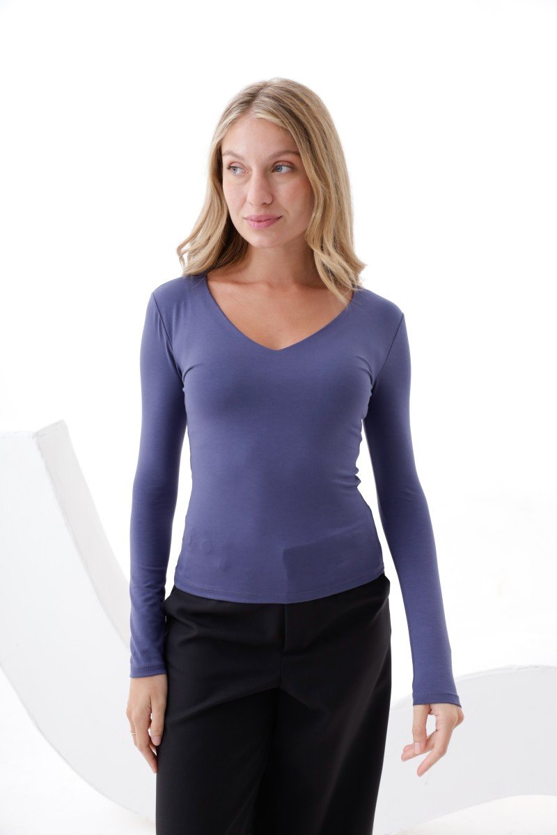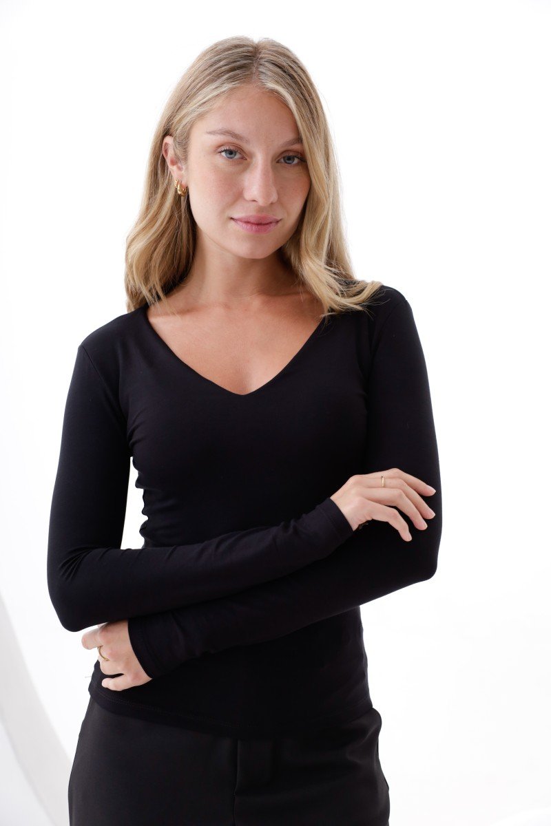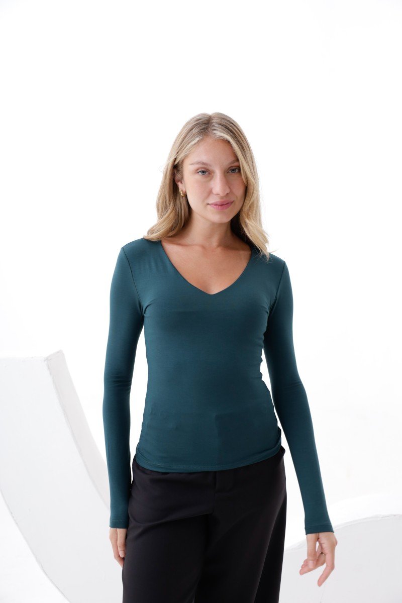 REMERA MANGA LARGA ESCOTE V CON DOBLE TELA MODAL VISCOSA
