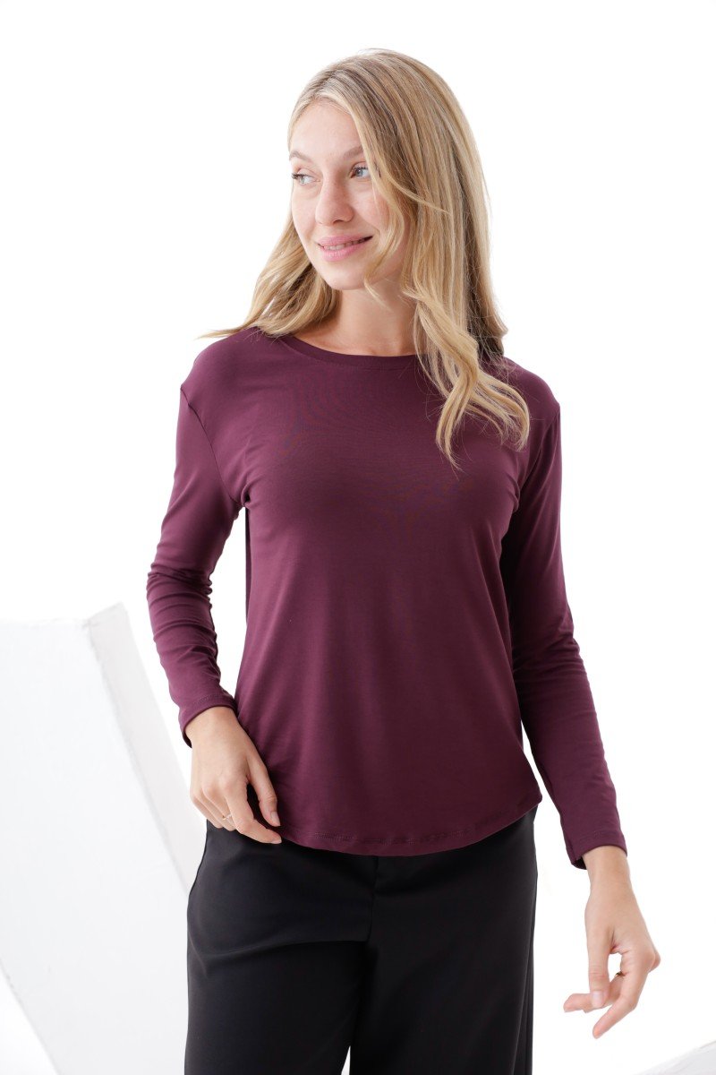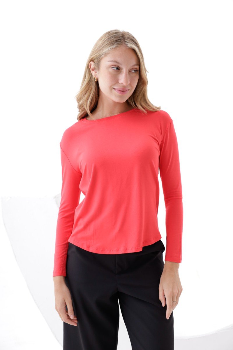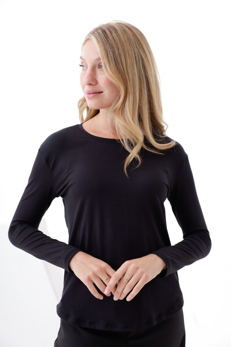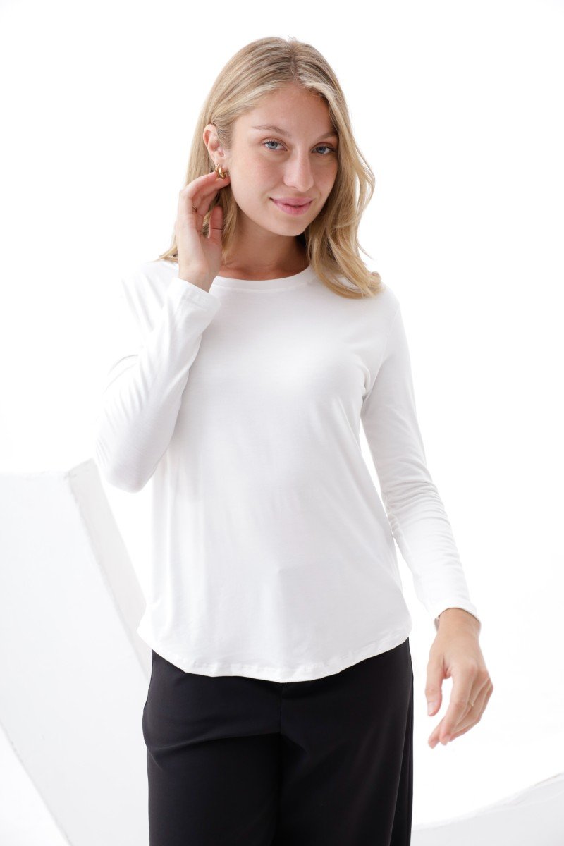 CAMISETA MANGA LARGA CINTURA REDONDEADA MODAL VISCOSA