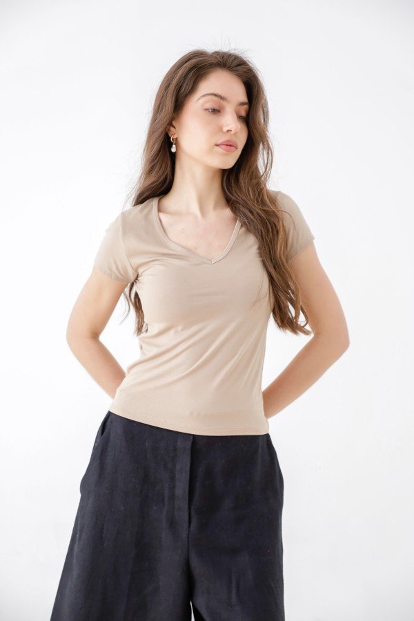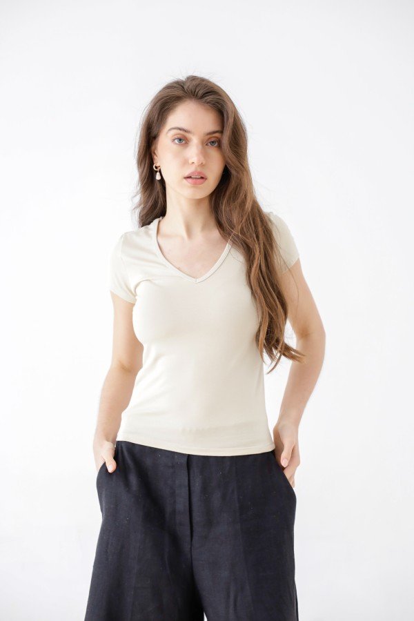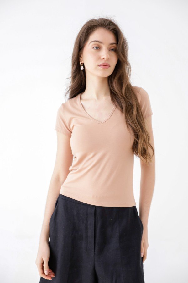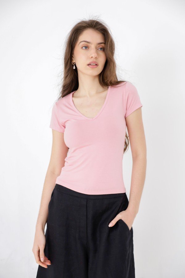 REMERA BASICA ESCOTE V MODAL VISCOSA